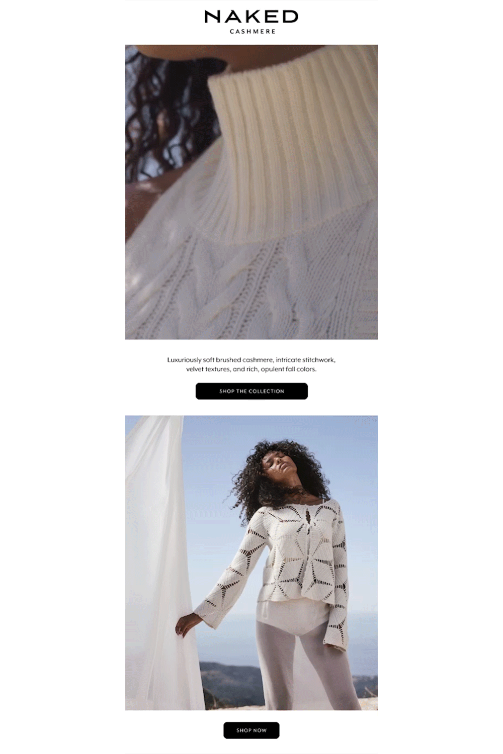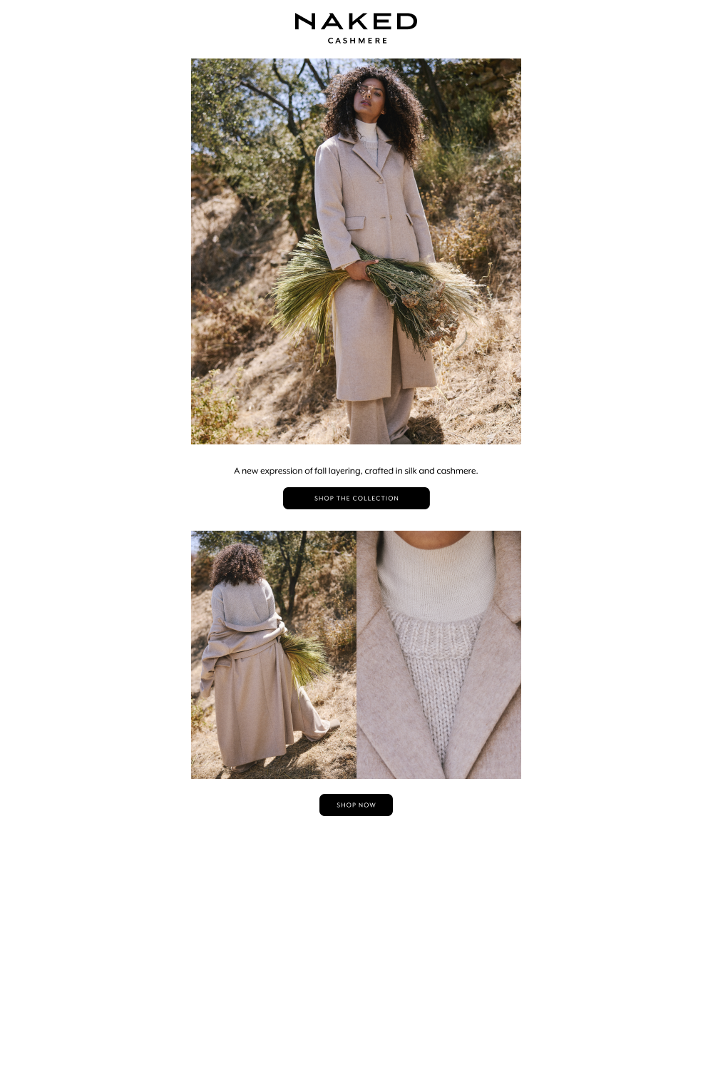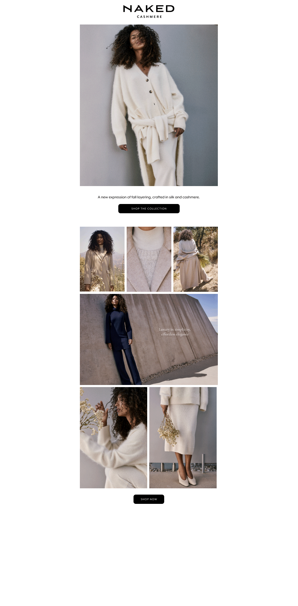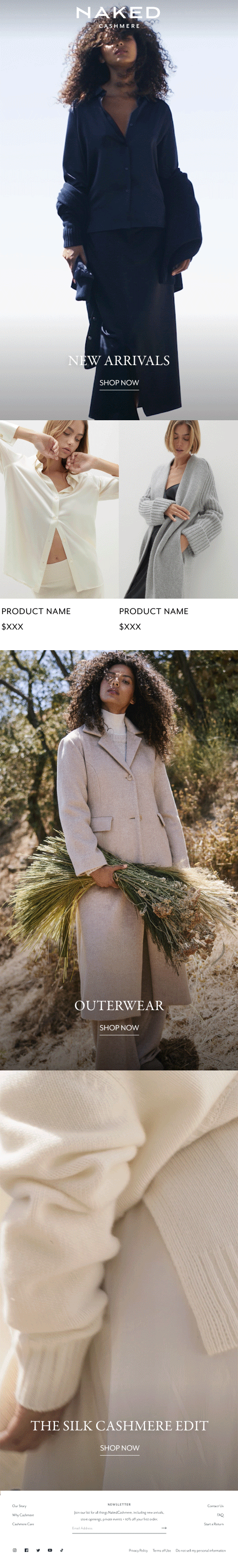 This campaign focuses on translating Naked Cashmere’s vision of modern luxury into a cohesive seasonal narrative across digital and marketing platforms. Through elevated imagery, refined typography, and editorial storytelling, the campaign emphasized effortless elegance while integrating new collections seamlessly within the brand’s existing ecosystem.